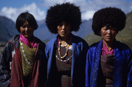 Where the women wear black yak-hair costumes and strange, conical bamboo hats.